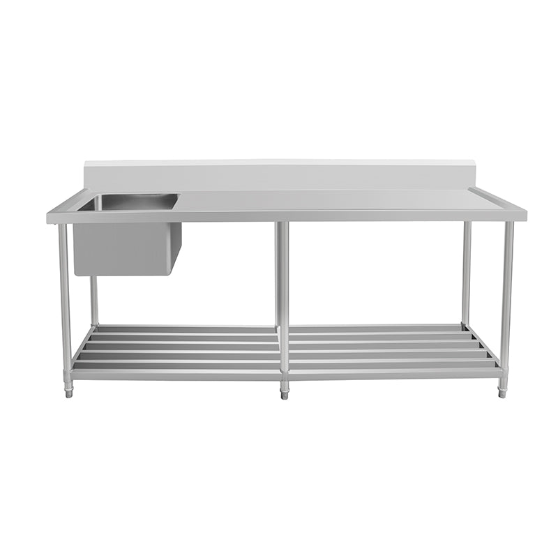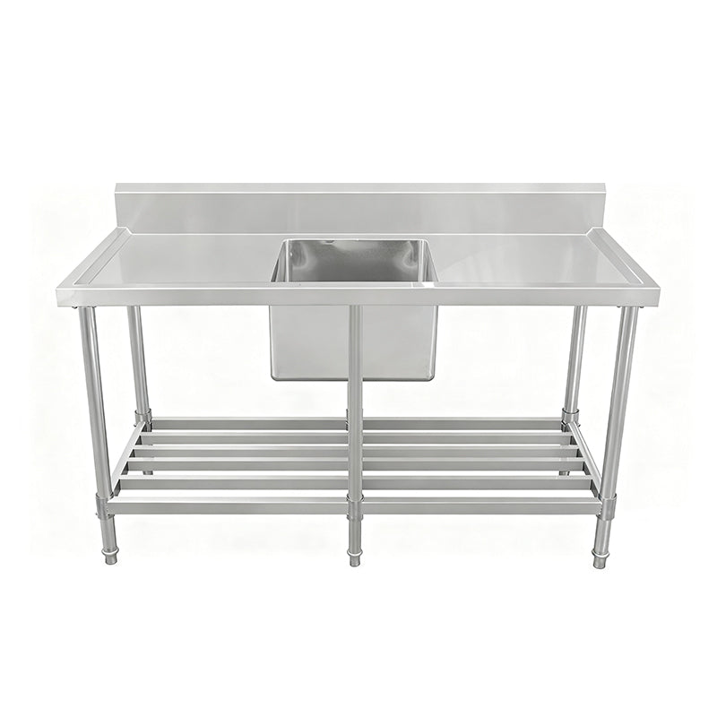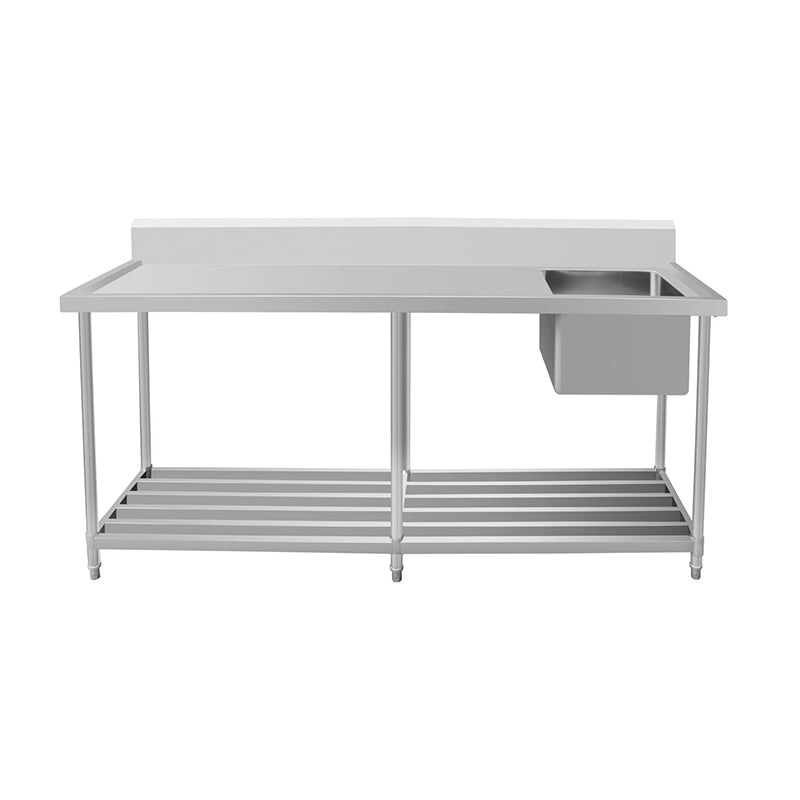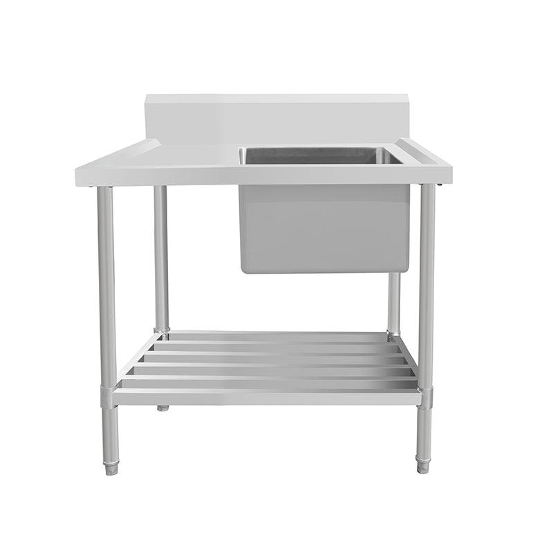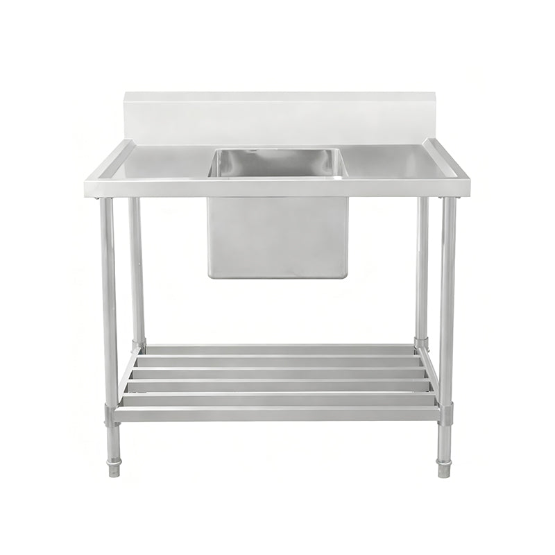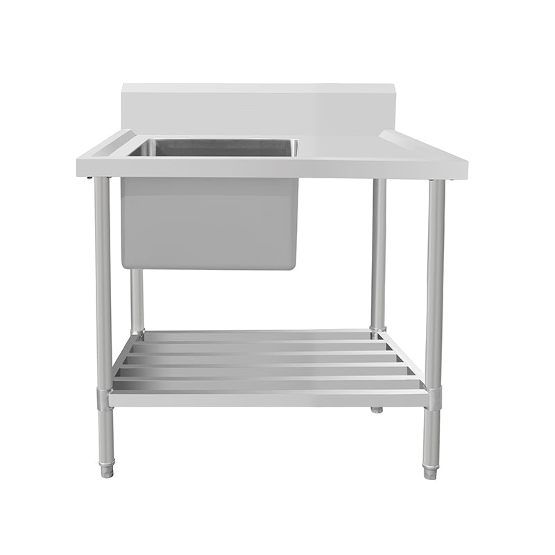 Single Sink bench with splashback available in 600mm and 700mm depth150mm splashback for added protection1.2mm SUS304 stainless steel top1.0mm SUS201... Read more